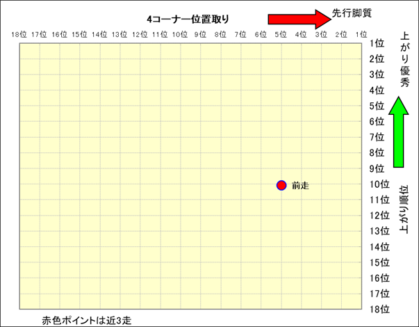 近走における4コーナーでの位置取りと上がり順位(頭数補正後) |