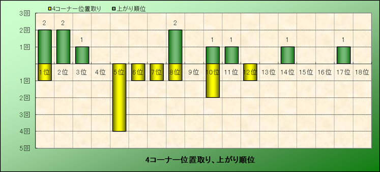 脚質解析 近20レースの4コーナーでの位置取りと上がり順位(頭数補正後) |