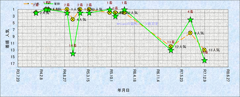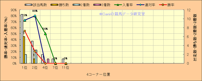 近走における4コーナーでの位置取りと上がり順位(頭数補正後) |