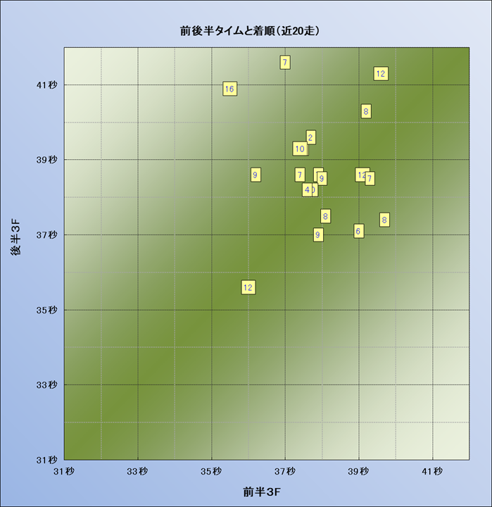 脚質解析 近20レースの4コーナーでの位置取りと上がり順位(頭数補正後) |