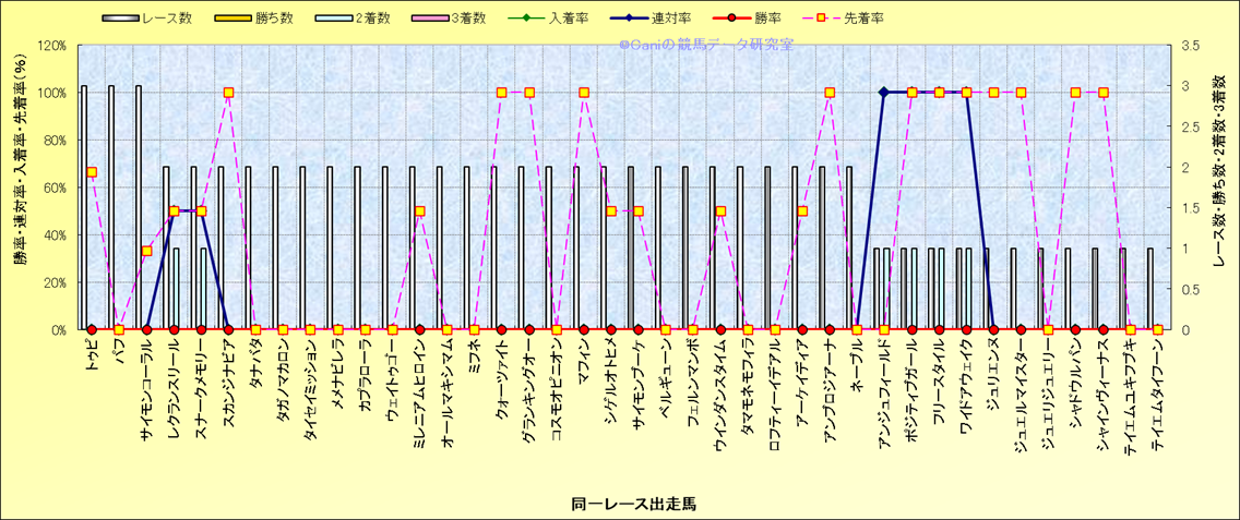 ライバル(相性)解析 同一レースに下記馬が出走した場合の成績とその馬に先着する先着率 |
