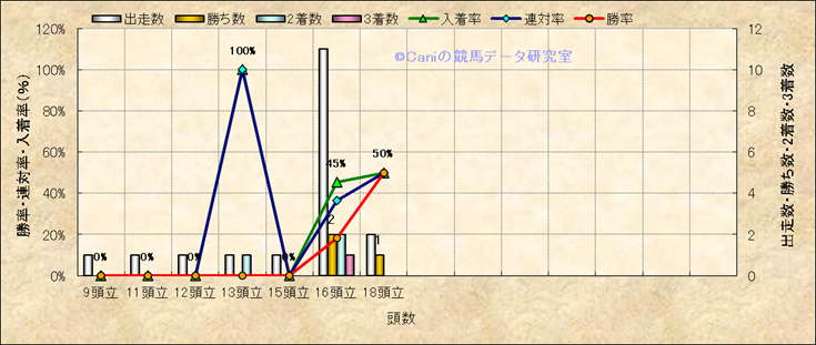 コース、最後の直線の高低差別成績(平地) |