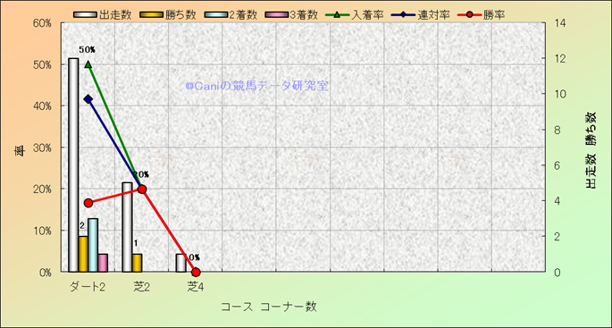 コース、コーナー数別成績(平地) |