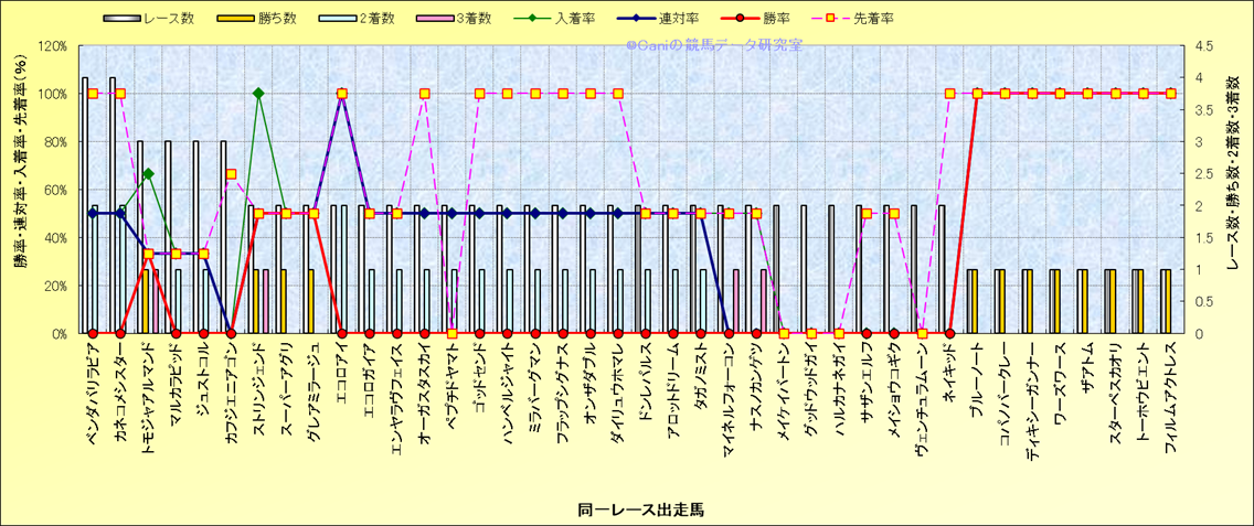 ライバル(相性)解析 同一レースに下記馬が出走した場合の成績とその馬に先着する先着率 |