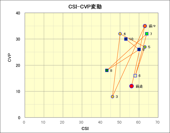 近走における4コーナーでの位置取りと上がり順位(頭数補正後) |