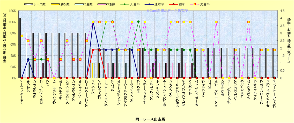 ライバル(相性)解析 同一レースに下記馬が出走した場合の成績とその馬に先着する先着率 |