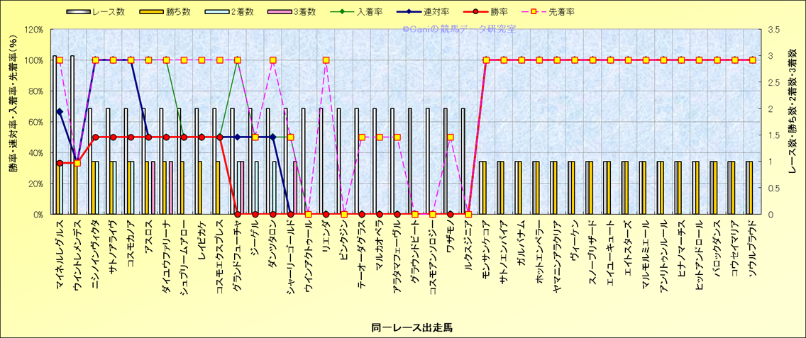 ライバル(相性)解析 同一レースに下記馬が出走した場合の成績とその馬に先着する先着率 |
