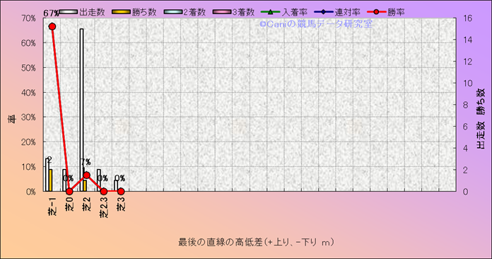 コース、最後の直線の高低差別成績(平地) |