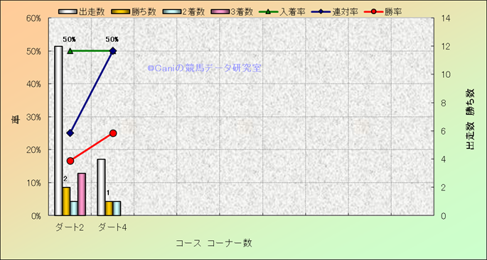 コース、コーナー数別成績(平地) |