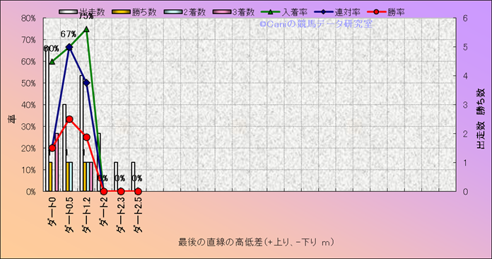 コース、最後の直線の高低差別成績(平地) |