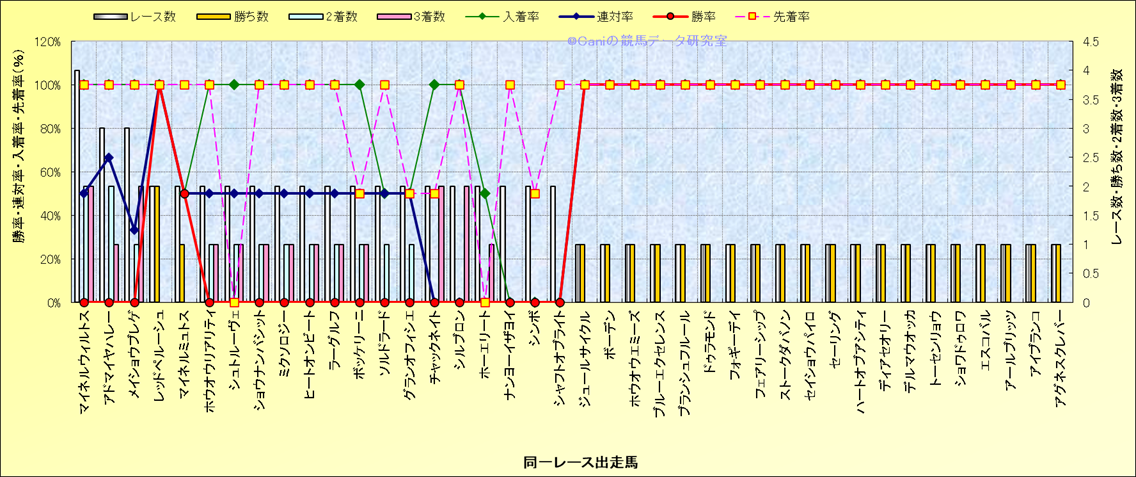 ライバル(相性)解析 同一レースに下記馬が出走した場合の成績とその馬に先着する先着率 |