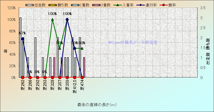 コース、最後の直線の長さ別成績(平地) |