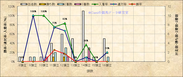 コース、最後の直線の高低差別成績(平地) |