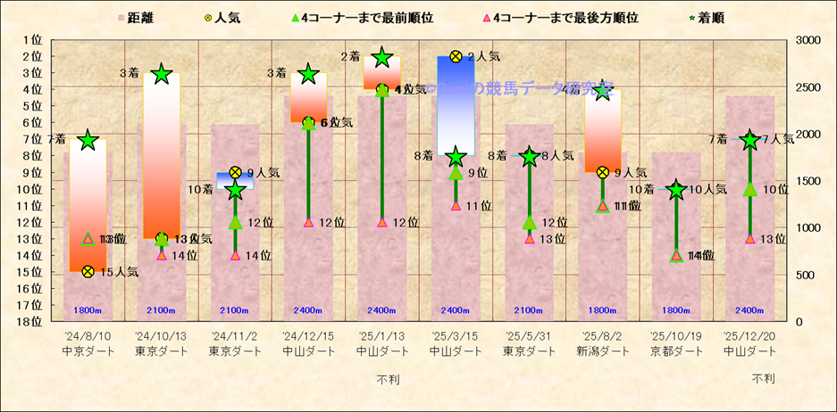 近10走 人気−着順-位置取りの推移 |