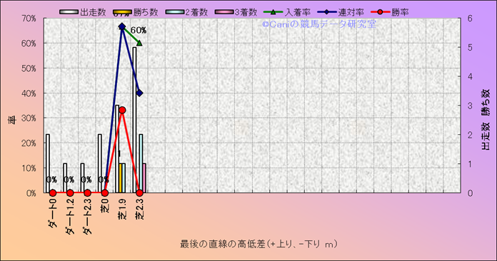 コース、最後の直線の高低差別成績(平地) |