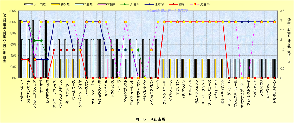ライバル(相性)解析 同一レースに下記馬が出走した場合の成績とその馬に先着する先着率 |