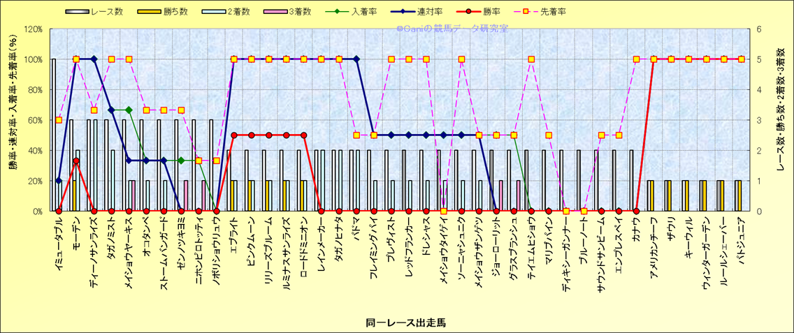 ライバル(相性)解析 同一レースに下記馬が出走した場合の成績とその馬に先着する先着率 |
