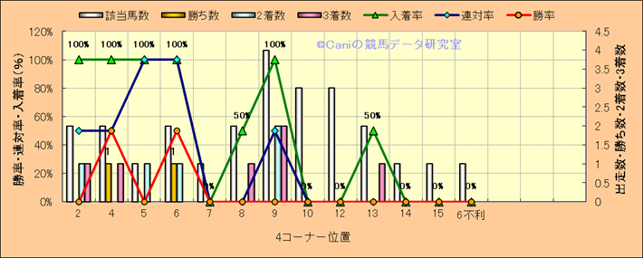 近走における4コーナーでの位置取りと上がり順位(頭数補正後) |