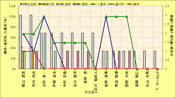 ライバル(相性)解析 同一レースに下記馬が出走した場合の成績とその馬に先着する先着率 |