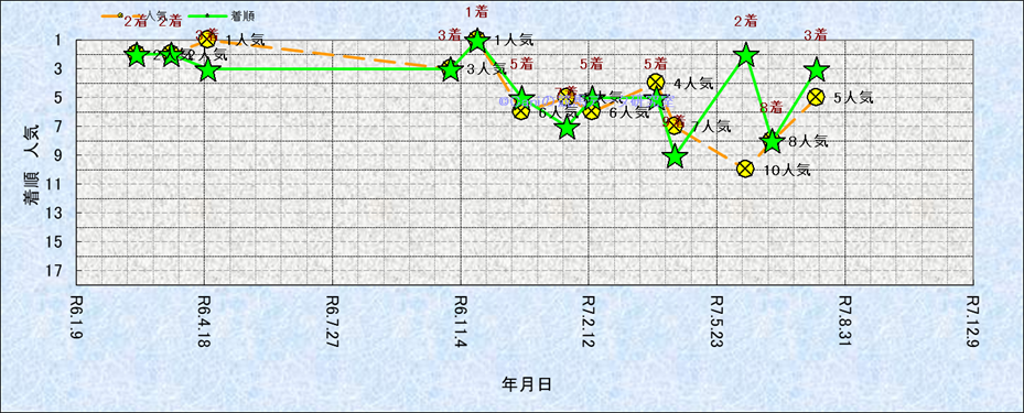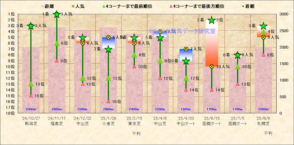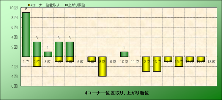 脚質解析 近20レースの4コーナーでの位置取りと上がり順位(頭数補正後) |