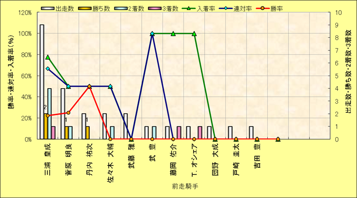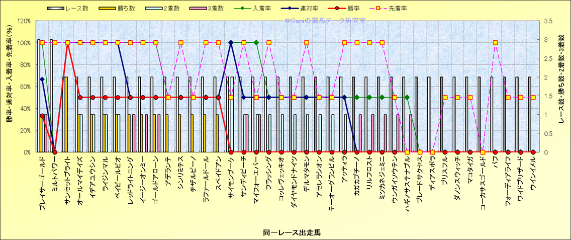 ライバル(相性)解析 同一レースに下記馬が出走した場合の成績とその馬に先着する先着率 |