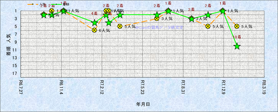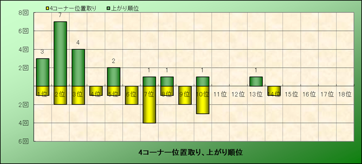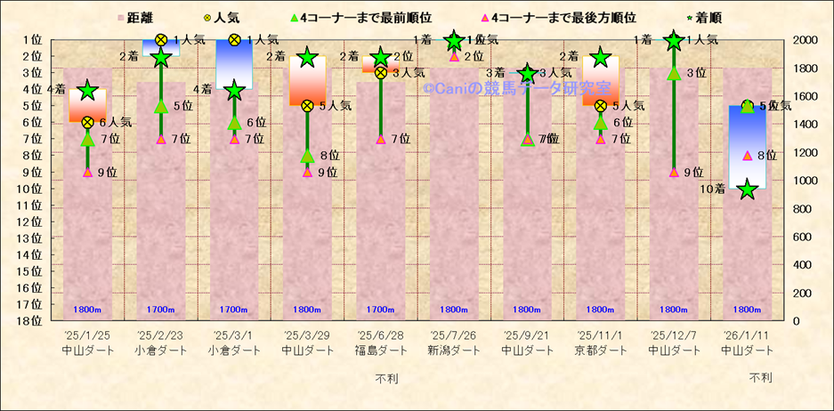 脚質解析 近20レースの4コーナーでの位置取りと上がり順位(頭数補正後) |
