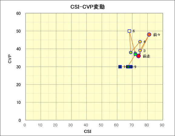 近走における4コーナーでの位置取りと上がり順位(頭数補正後) |