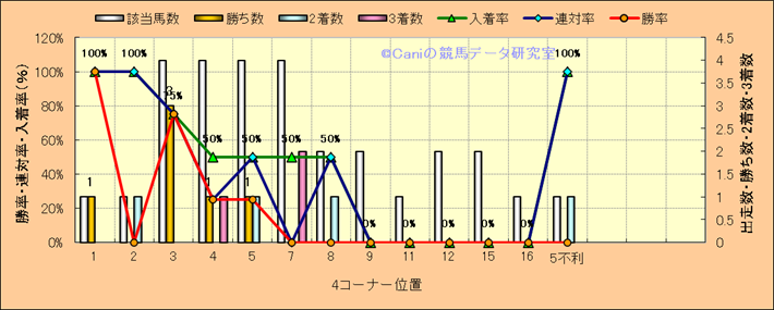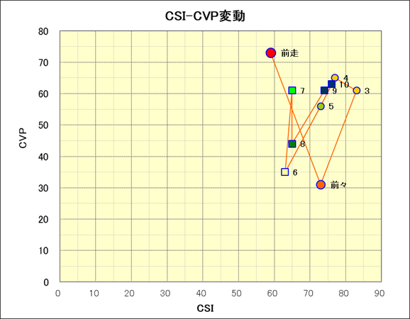 近走における4コーナーでの位置取りと上がり順位(頭数補正後) |
