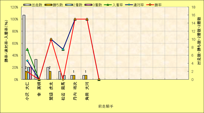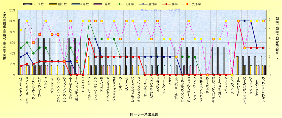 ライバル(相性)解析 同一レースに下記馬が出走した場合の成績とその馬に先着する先着率 |