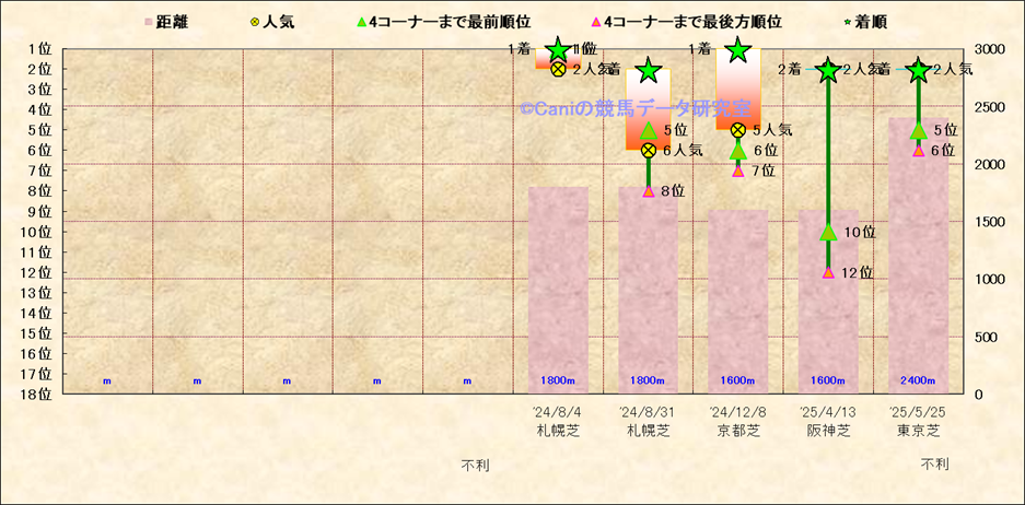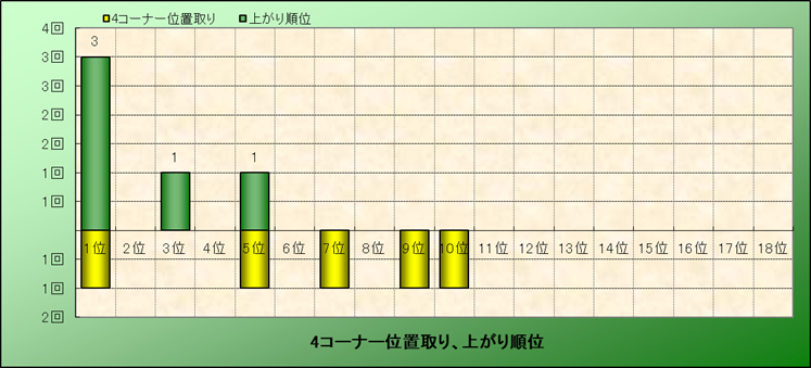 脚質解析 近20レースの4コーナーでの位置取りと上がり順位(頭数補正後) |