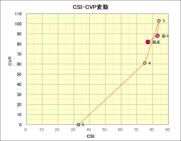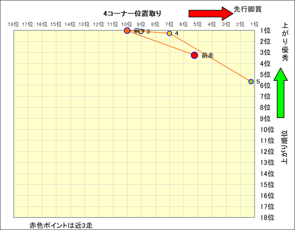 近走における4コーナーでの位置取りと上がり順位(頭数補正後) |