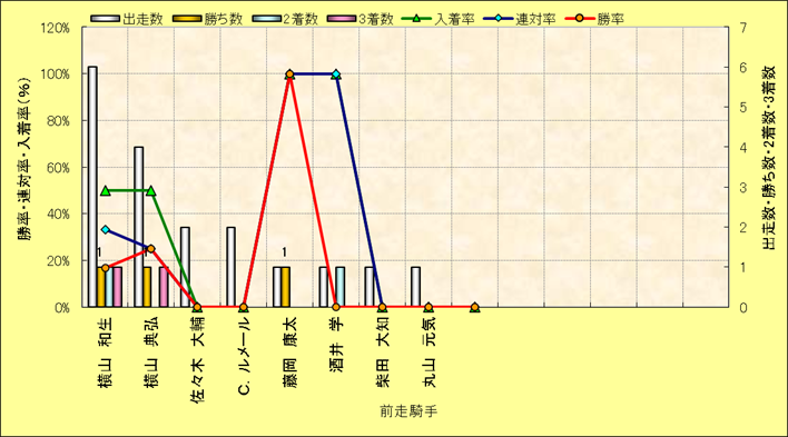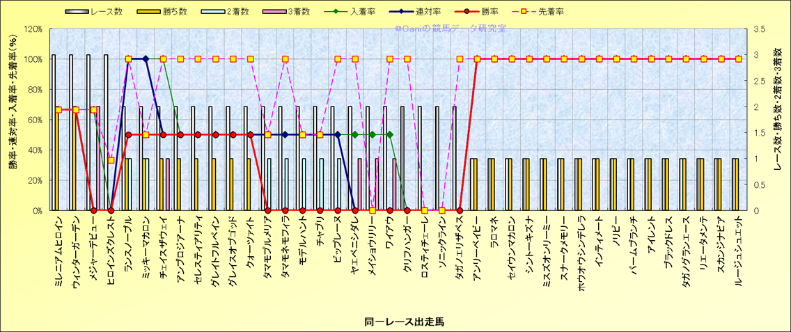 ライバル(相性)解析 同一レースに下記馬が出走した場合の成績とその馬に先着する先着率 |