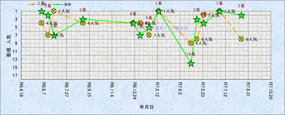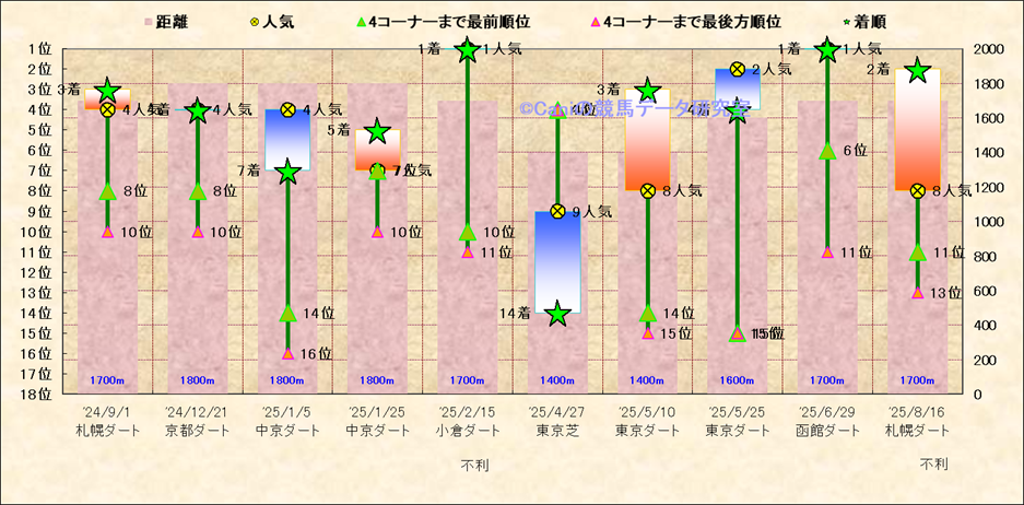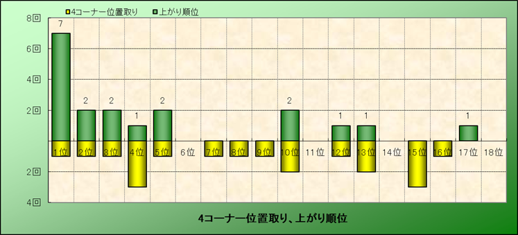 脚質解析 近20レースの4コーナーでの位置取りと上がり順位(頭数補正後) |