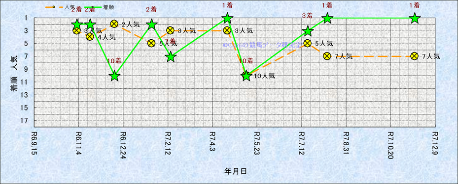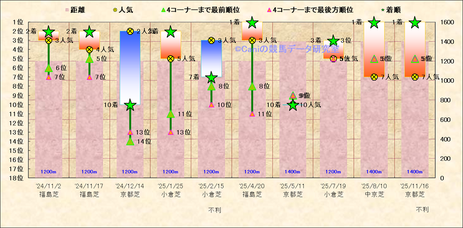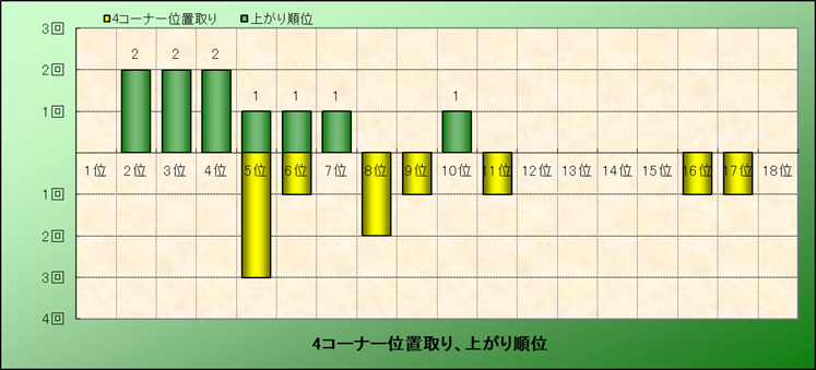 脚質解析 近20レースの4コーナーでの位置取りと上がり順位(頭数補正後) |