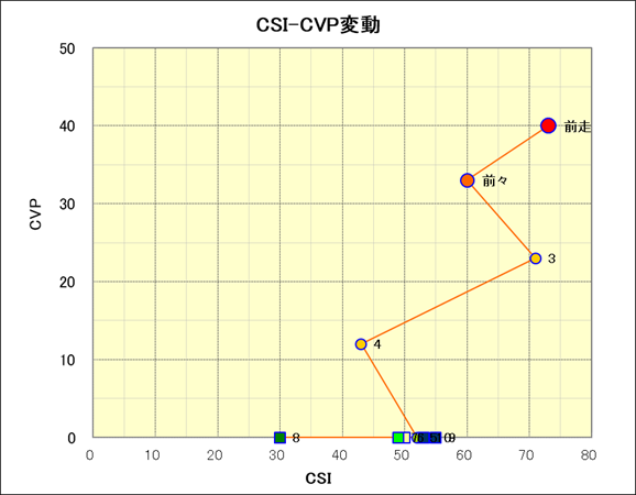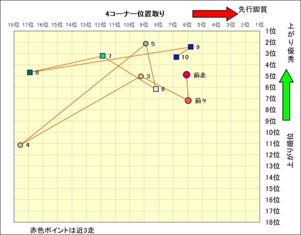 近走における4コーナーでの位置取りと上がり順位(頭数補正後) |