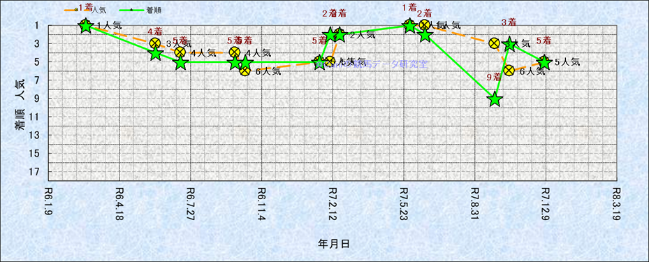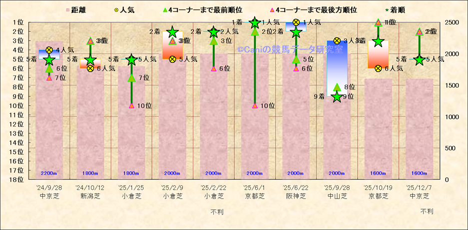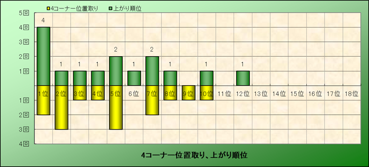 脚質解析 近20レースの4コーナーでの位置取りと上がり順位(頭数補正後) |
