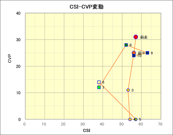 近走における4コーナーでの位置取りと上がり順位(頭数補正後) |