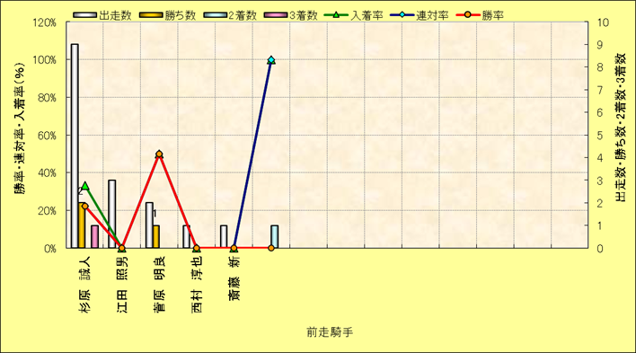 ライバル(相性)解析 同一レースに下記馬が出走した場合の成績とその馬に先着する先着率 |
