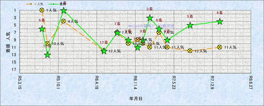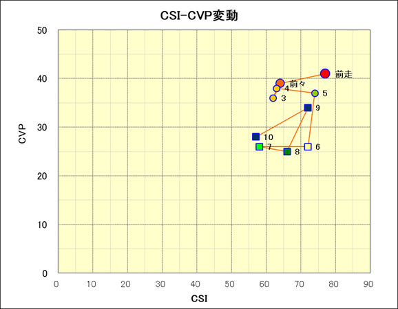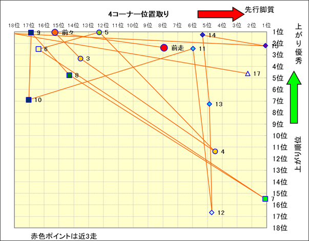 近走における4コーナーでの位置取りと上がり順位(頭数補正後) |