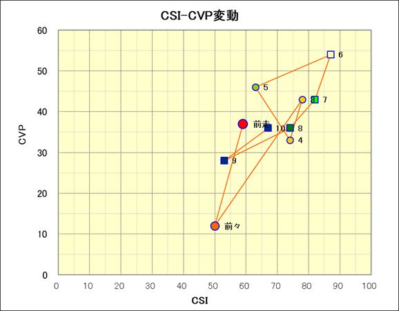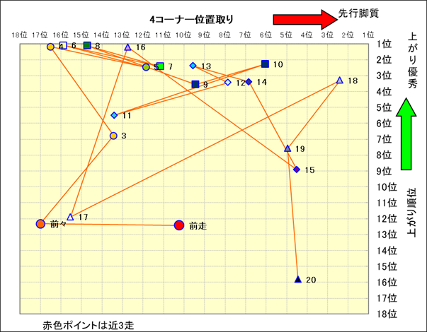 近走における4コーナーでの位置取りと上がり順位(頭数補正後) |