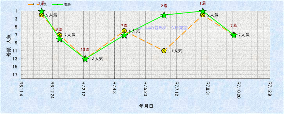 脚質解析 近20レースの4コーナーでの位置取りと上がり順位(頭数補正後) |