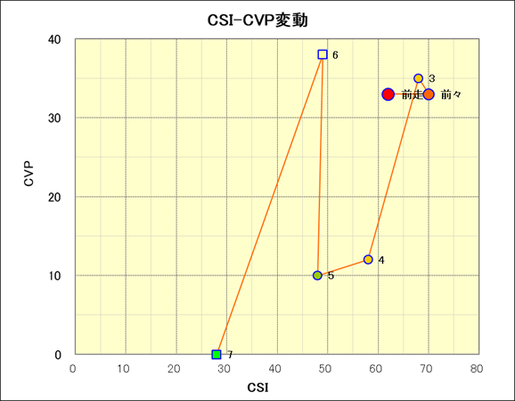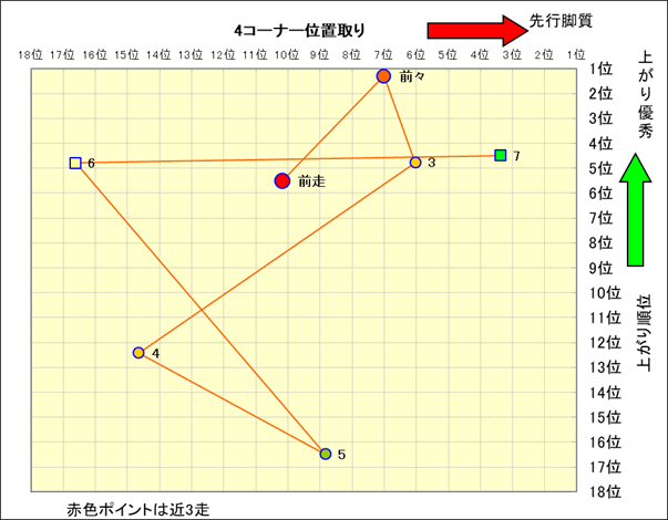 近走における4コーナーでの位置取りと上がり順位(頭数補正後) |