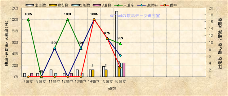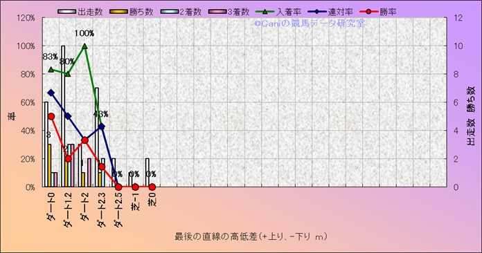 コース、最後の直線の高低差別成績(平地) |