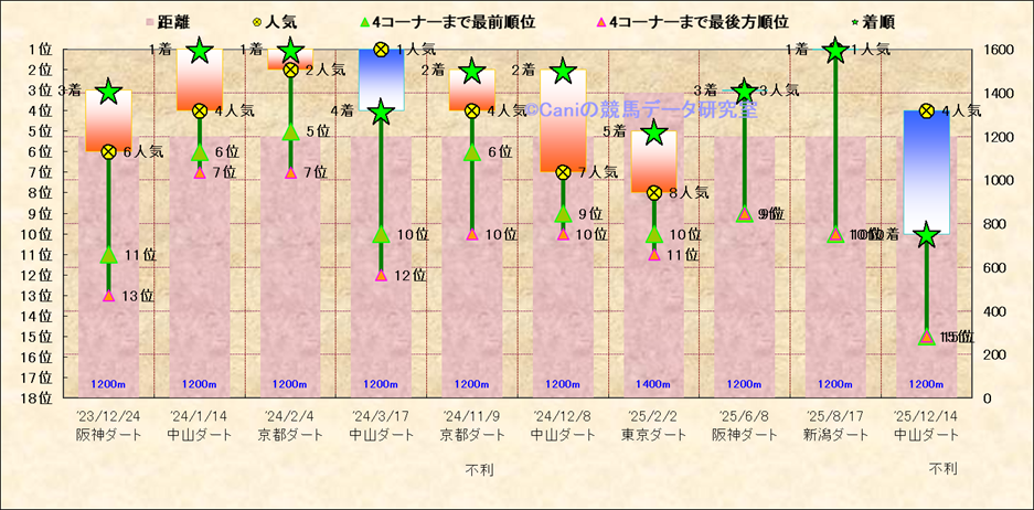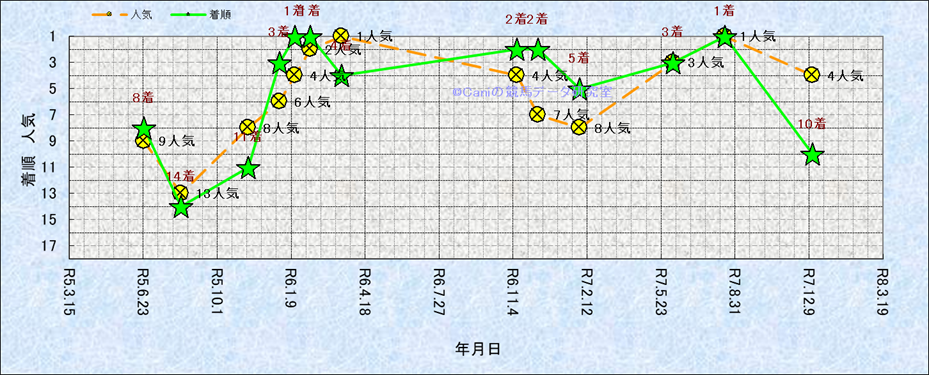 近10走 人気−着順-位置取りの推移 |