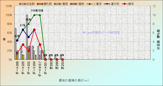 コース、最後の直線の長さ別成績(平地) |