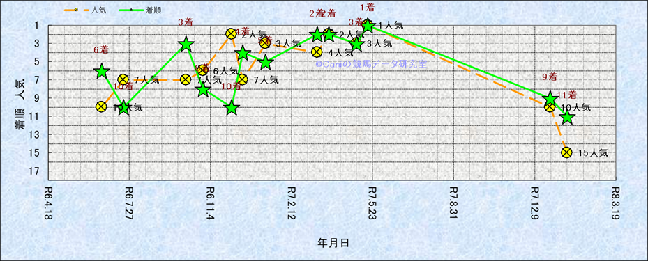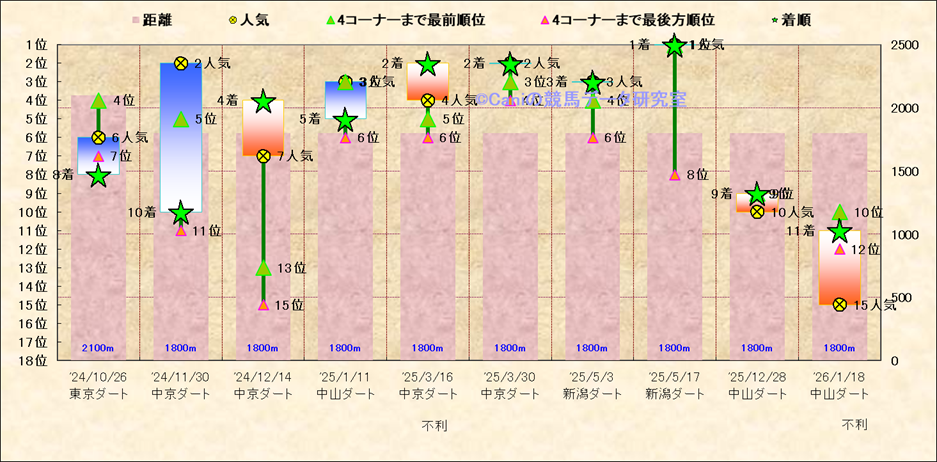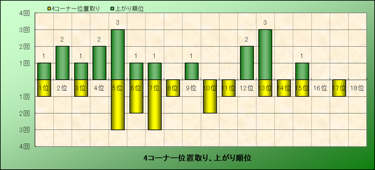 脚質解析 近20レースの4コーナーでの位置取りと上がり順位(頭数補正後) |