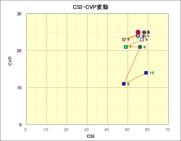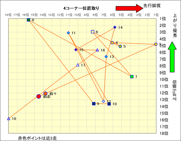 近走における4コーナーでの位置取りと上がり順位(頭数補正後) |