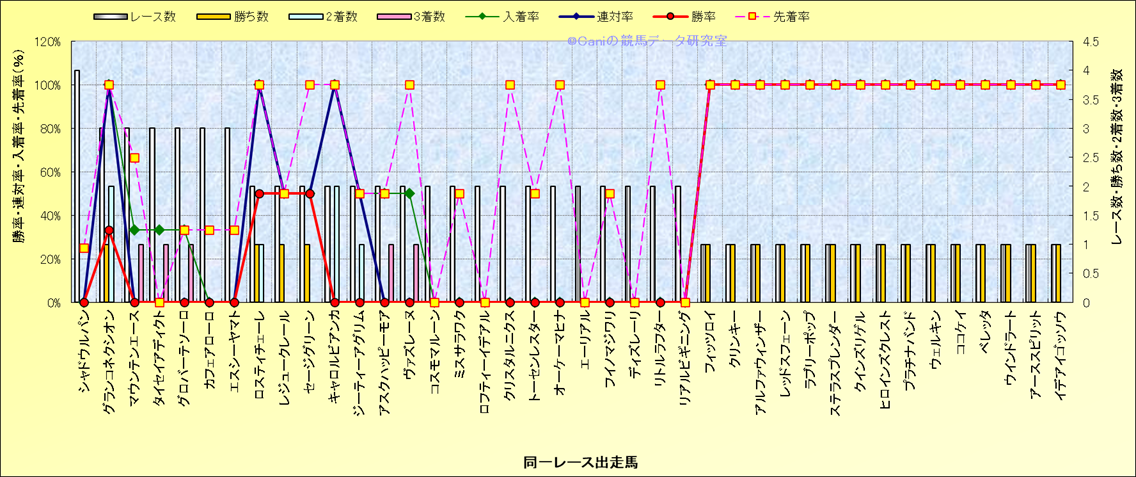 ライバル(相性)解析 同一レースに下記馬が出走した場合の成績とその馬に先着する先着率 |