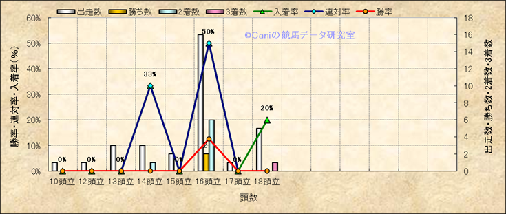 コース、最後の直線の高低差別成績(平地) |