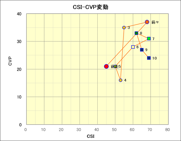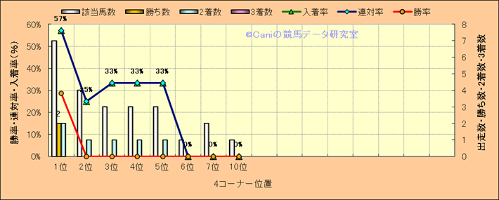 近走における4コーナーでの位置取りと上がり順位(頭数補正後) |